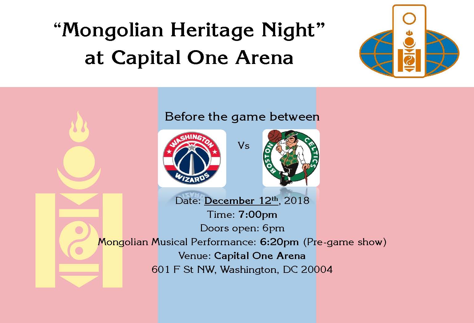 MONGOLIAN HERITAGE NIGHT AT CAPITAL ONE ARENA BEFORE NBA GAME