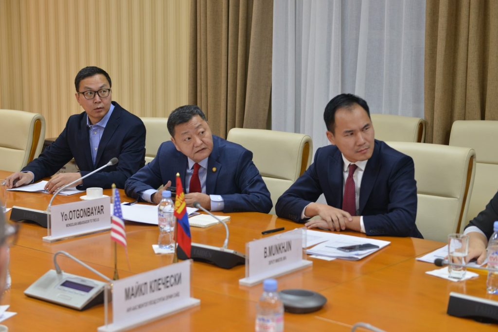Монголын талаас Гадаад харилцааны дэд сайд Б.Мөнхжин зөвлөлдөх уулзалтыг нээж үг хэлэв. Тэрээр Монгол, Америкийн харилцаа, хамтын ажиллагааг цаашид хөгжүүлэхийн чухлыг дурдаад, хоёр орны худалдаа эдийн засгийн харилцааг өргөжүүлэхэд дэд бүтцийн бүтээн байгуулалтын төслүүдэд америкийн талын оролцоо, хөрөнгө оруулалт, хамтын ажиллагаа чухал байгааг онцлон тэмдэглэв.
