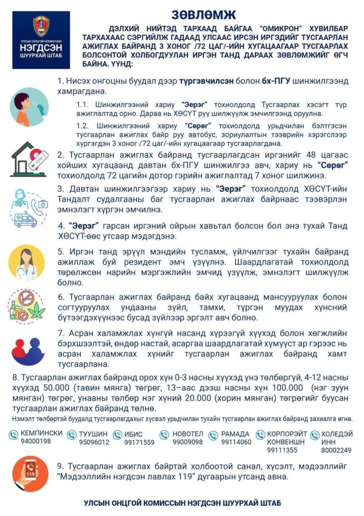 Улсын Онцгой комиссын шуурхай штабын зөвлөмж