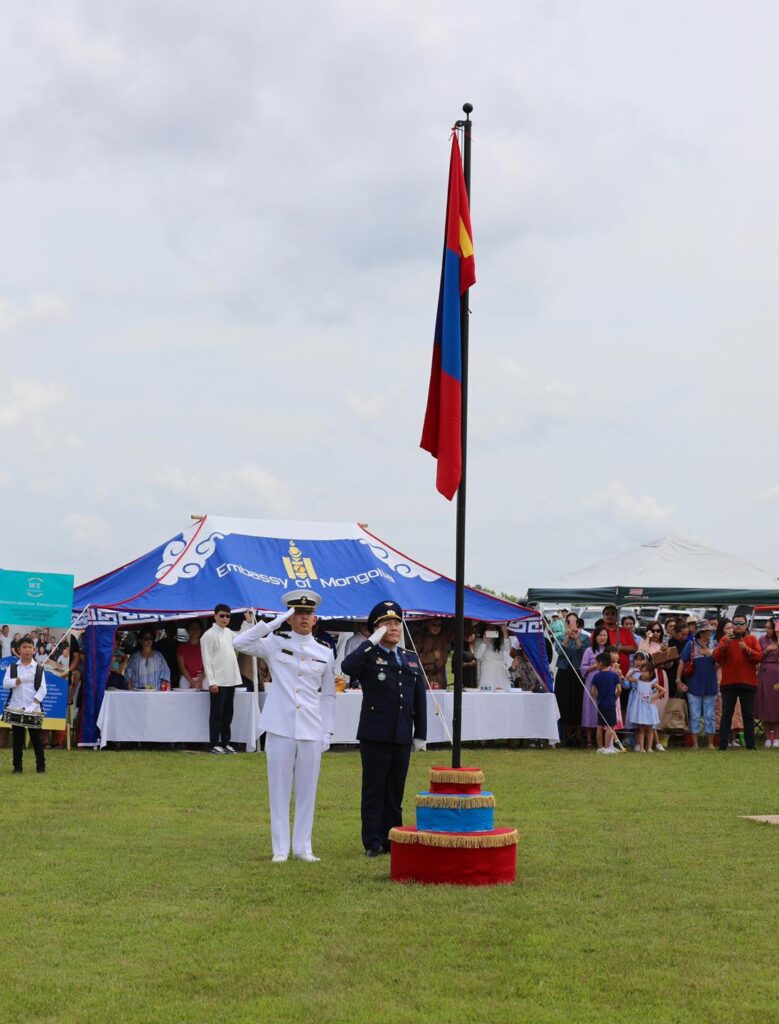 Баяр наадмын өдөр Монгол Улсын Төрийн далбааны өдөр тохиож байсантай холбогдуулан Төрийн далбааг мандуулах ёслолоор наадмын үйл ажиллагааг эхлүүлэв. Төрийн далбааг мандуулах ёслолыг Монгол Улсаас АНУ-д суугаа ЭСЯ-ны Цэргийн атташе, Хурандаа Э.Гансүх удирдаж, АНУ-ын Үндэсний батлан хамгаалах их сургуулийн Үндэсний аюулгүй байдлын стратеги, батлан хамгаалах аж үйлдвэрийн сургуульд суралцаж байгаа хурандаа П.Идэр, АНУ-ын Тэнгэсийн цэргийн академийн сонсогч С.Санаасайн нар Төрийн далбааг мандуулав.