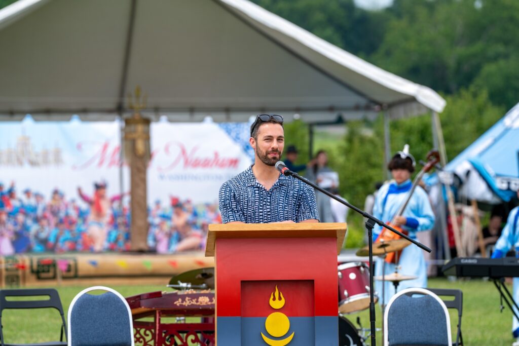 АНУ-ын Вашингтон ДиСи орчимд ажиллаж, амьдарч, суралцаж буй нийт Монголчуудын Үндэсний их баяр наадам 2023 оны 7 дугаар сарын 9-ний өдөр Виржиниа мужийн Фэйрфакс дүүргийн “Bull run Regional Park” цэцэрлэгт хүрээлэнд ёслол төгөлдөр зохион байгуулагдлаа. Баяр наадмын үйл ажиллагааг Төрийн далбааг мандуулах ёслолоор эхлүүлэв. Төрийн далбааг мандуулах ёслолыг Монгол Улсаас АНУ-д суугаа ЭСЯ-ны Цэргийн атташе, Хурандаа Э.Гансүх удирдаж, Монгол Улсын Гавьяат тамирчин С.Миарагчаа, АНУ-ын Тэнгэсийн цэргийн академийн сонсогч С.Санаасайн нар мандуулав.Баяр наадмын арга хэмжээг Монгол Улсаас АНУ-д суугаа Онц бөгөөд Бүрэн эрхт Элчин Сайд Ө.Батбаяр нээж, үг хэллээ. Мөн түүнчлэн баяр наадмын үйл ажиллагаанд хүндэт зочноор уригдан оролцсон АНУ-ын Туслах Төрийн Нарийн Бичгийн даргын орлогч Марк Ламберт, Цагаан ордны ҮАБЗ-ийн Солонгосын хойг, Монголын асуудал хариуцсан захирал Эндрю Арвесет нар үг хэлж наадамчин олонд мэндчилгээ дэвшүүлэв. Наадмын хүчит бөхийн барилдаанд улс, аймаг, сумын цолтой чансаа өндөр 32 бөх зодоглож, шагайн харваа, сурын харваа, хүүхдийн гүйлт, шагайгаар морь уралдуулах, гар барилдаан зэрэг олон төрлийн уламжлалт болон орчин үеийн тэмцээнийг хослуулан зохион байгуулав. Тэмцээнүүдийн дэлгэрэнгүй мэдээллийг цувралаар хүргэх болно. Энэ жилийн “Монгол наадам”-ыг АНУ-д суугаа Монгол Улсын ЭСЯ Вашингтон ДиСи орчмын Монголчуудын холбоо болон бусад ТББ-тай хамтран амжилттай зохион байгуулав. Наадмын үйл ажиллагааг зохион байгуулахад хамтран ажилласан нийт байгууллагууд, хувь хүмүүс, ивээн тэтгэгчид Та бүхэндээ гүн талархал илэрхийлж байна. ЮНЕСКО-ийн Соёлын биет бус өвийн жагсаалтад бүртгэгдсэн “Монгол Наадам”-ыг суугаа орондоо сурталчлан таниулах үйлсэд АНУ-д амьдарч буй иргэд, оюутан залуус, хүүхэд багачууд өргөнөөр хамрагдлаа. Наадамд нийт дотно болон гадны 1800 гаруй иргэд хүрэлцэн ирж дэнж хотойтол сайхан наадлаа. Та бүхэн сайхан наадаарай!!!